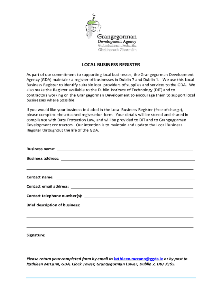 Agency (GDP) maintains a register of businesses in Dublin 7 and Dublin 1. We use this