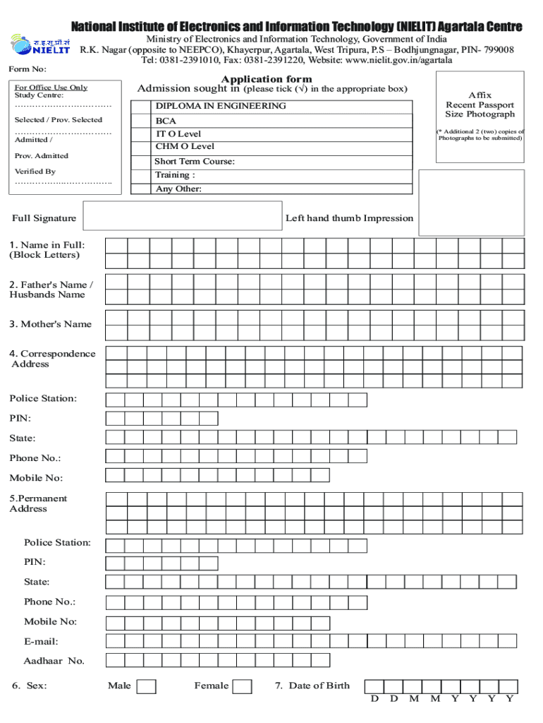 NIELIT Ministry of Electronics and is required by individuals or organizations who want to avail the services offered by NIELIT. These services may include training programs, certification courses, skill development initiatives, and other services related to electronics and information technology. It is also necessary for individuals or organizations who want to apply for government schemes, funding, or projects related to the electronics and IT sector. Therefore, anyone who wants to participate in NIELIT's programs or seek their assistance will need to fill out NIELIT Ministry of Electronics and form.