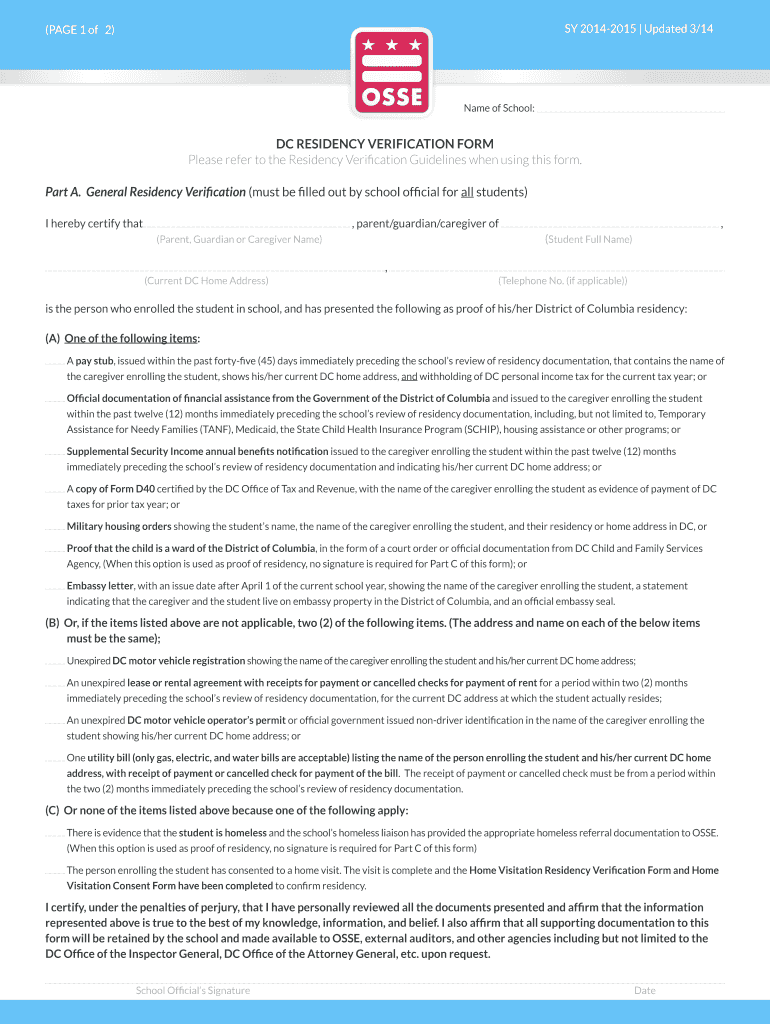 Get the free DC Residency Verification Form