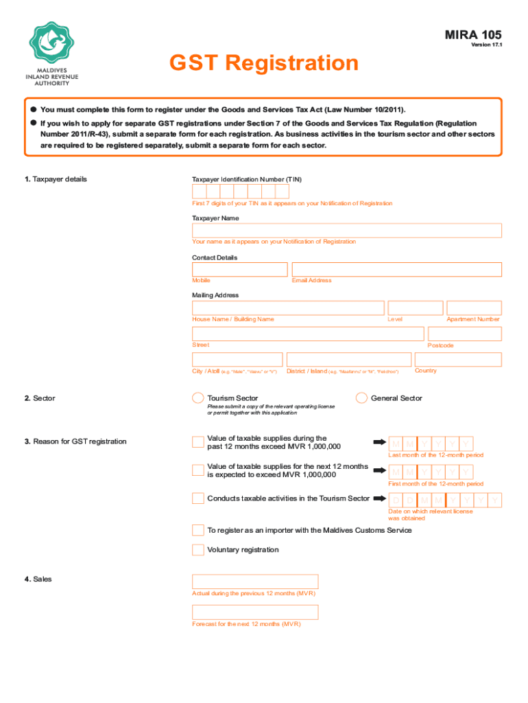 You must complete this form to register under the Goods and Services Tax Act (Law Number 10/2011).