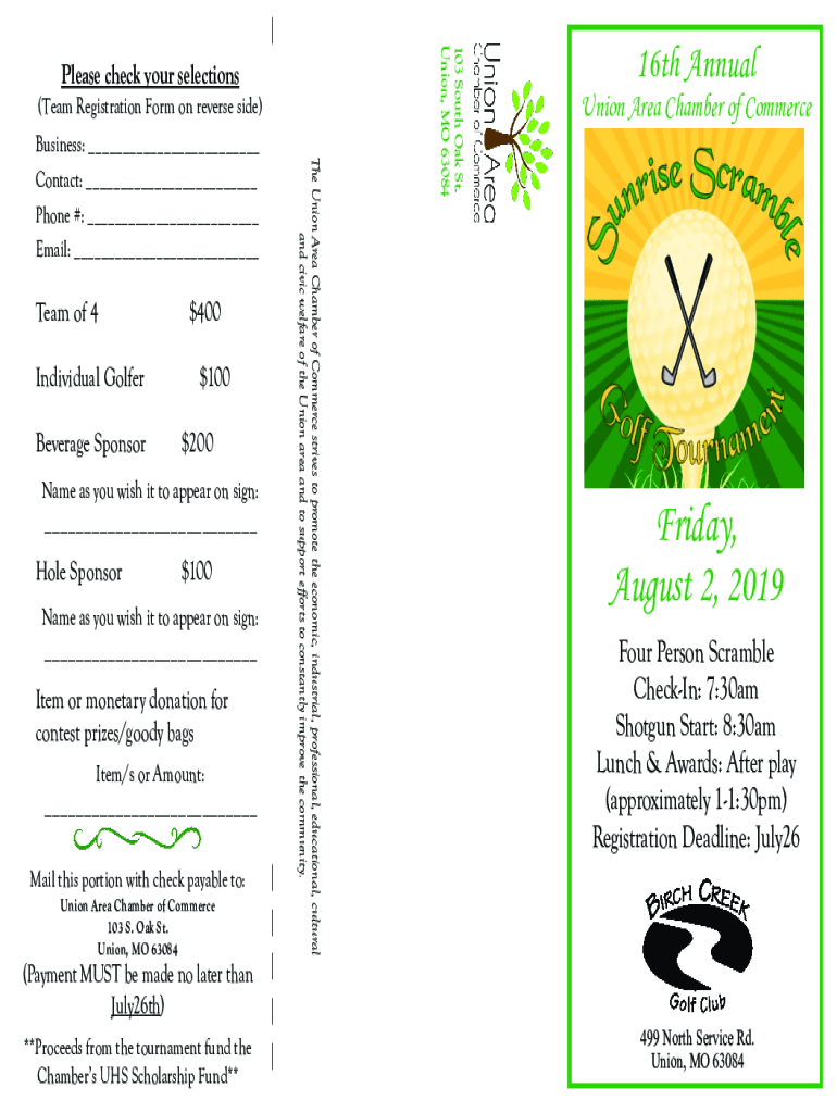 Fill out your sunrise scramble golf tournament online with pdfFiller!