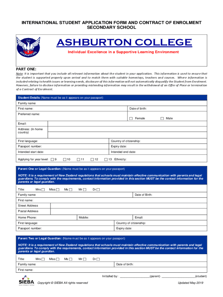 Get the free PDF International Application Form and Contract of Enrolment
