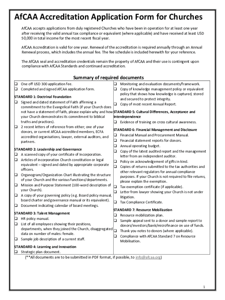 AFCA Accreditation Application Form for Churches