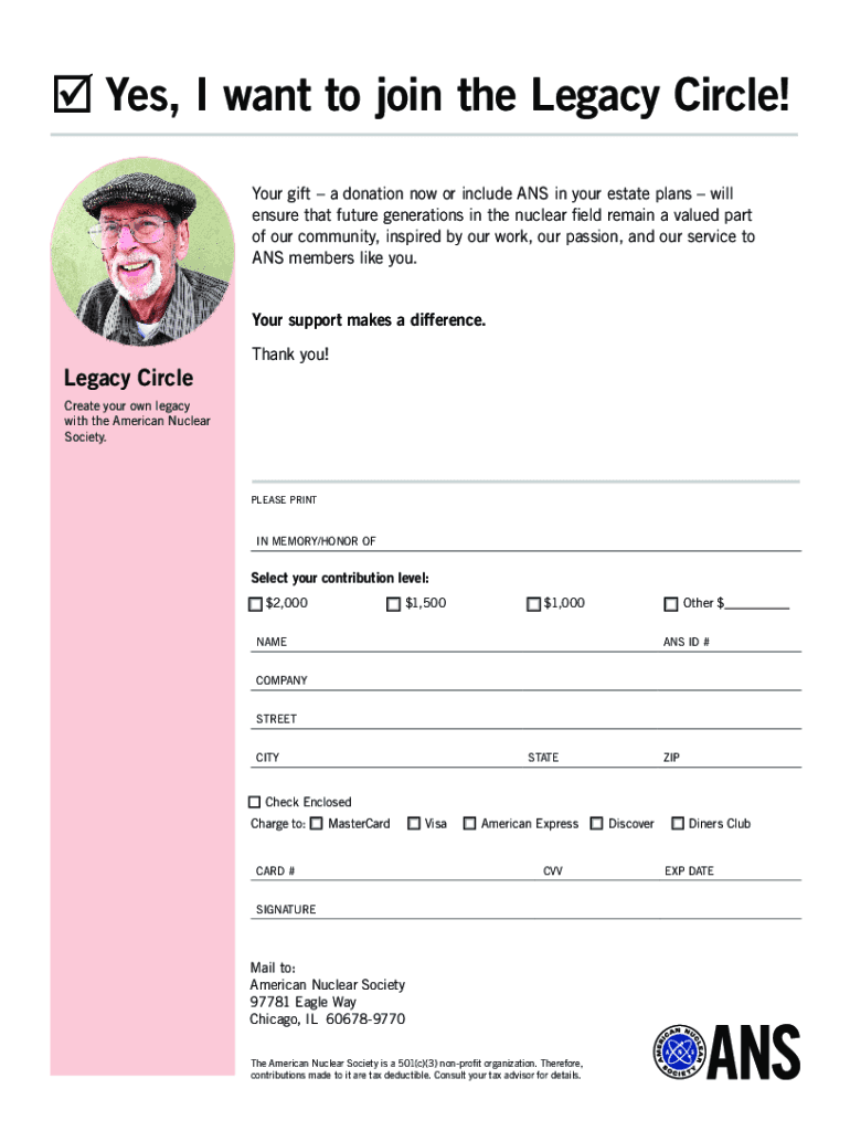 Yes, I want to join the Legacy Circle! Your gift a donation now or include ANS in your estate plans will ensure that future generations in the nuclear field remain a valued part of our community,