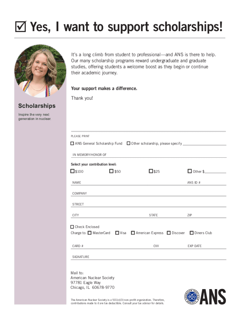 Yes, I want to support scholarships! It's a long climb from student to professional and ANS is there to help. Our many scholarship programs reward undergraduate and graduate studies, offering students