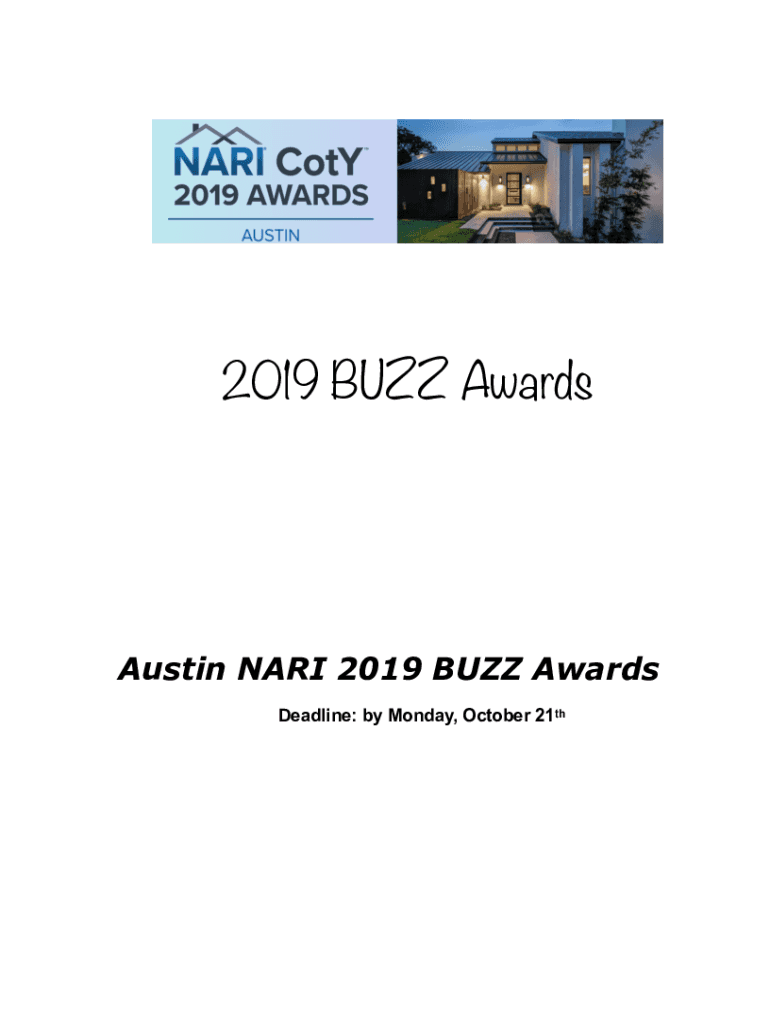 Deadline: by Monday, October 21thAustin NAZI members are invited to compete for the prestigious Austin NAZI 2019 BUZZ Awards in recognition of their