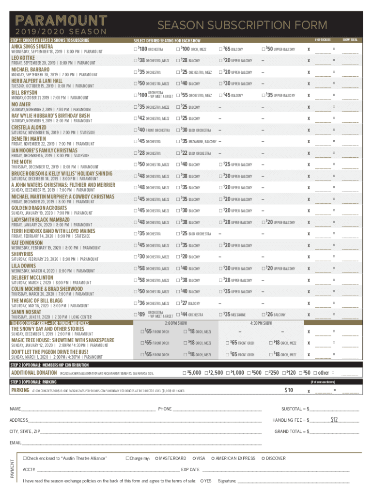 Get the free SEASON SUBSCRIPTION FORM - Paramount Theatre
