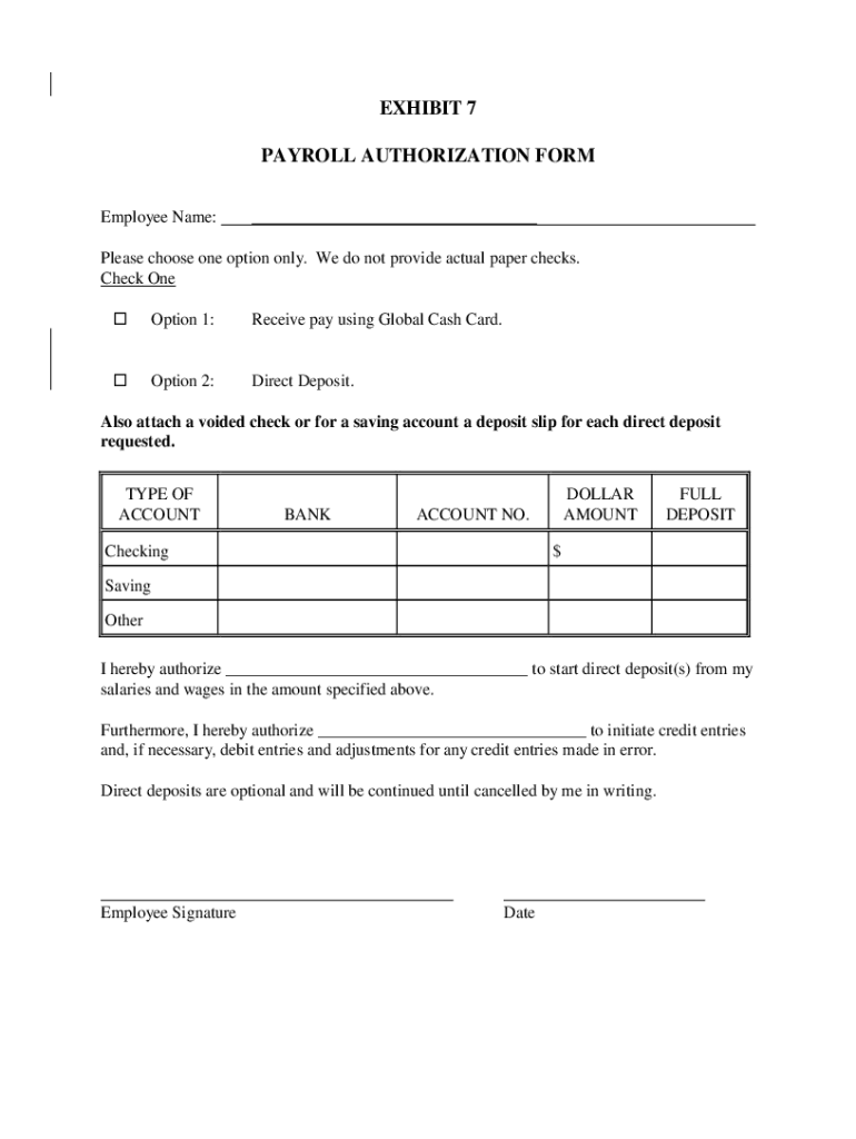Employers or payroll administrators may also require exhibit 7 payroll authorization in order to process payroll accurately.