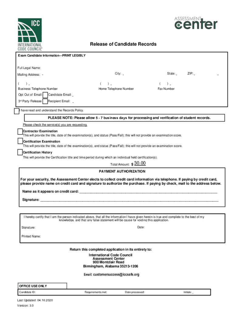 No information from records, files or other ICC data directly related to a candidate other than public information