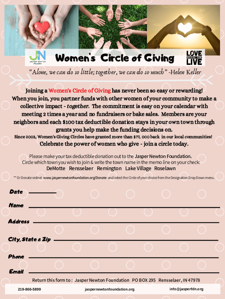 Women's Circle of Giving Alone, we can do so little; together, we can do so much Helen Keller Joining women's Circle of Giving has never been so easy or rewarding! When you join, you partner funds
