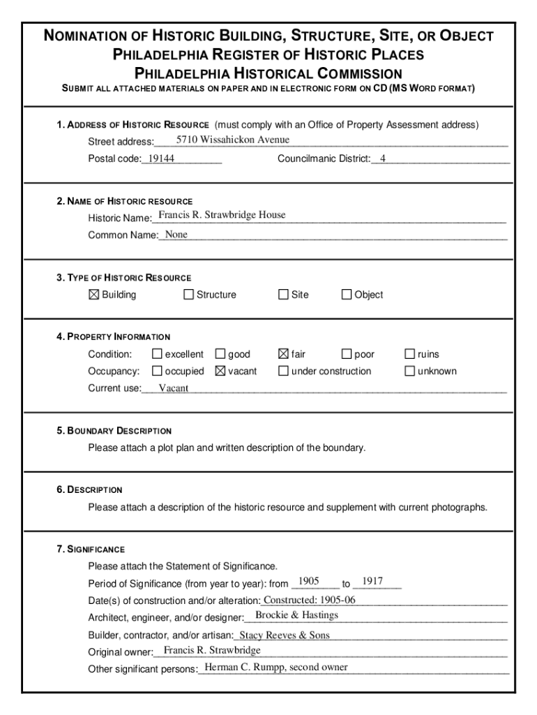 Get the free NOMINATION OF HISTORIC BUILDING S O PHILADELPHIA REGISTER OF ...