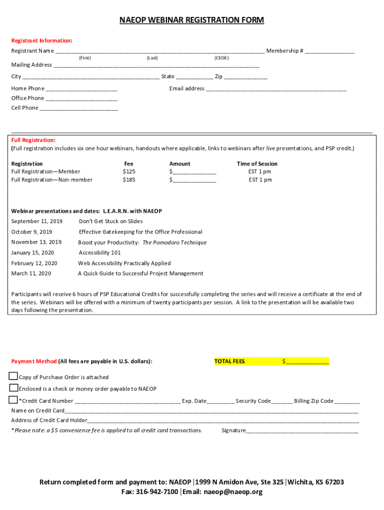 NATO WEBINAR REGISTRATION FORM Registrant Information: Registrant Name Membership # (First)(Last)(CEDE)Mailing Address City State Zip Home Phone Email address Office Phone Cell Phone Full Registration: