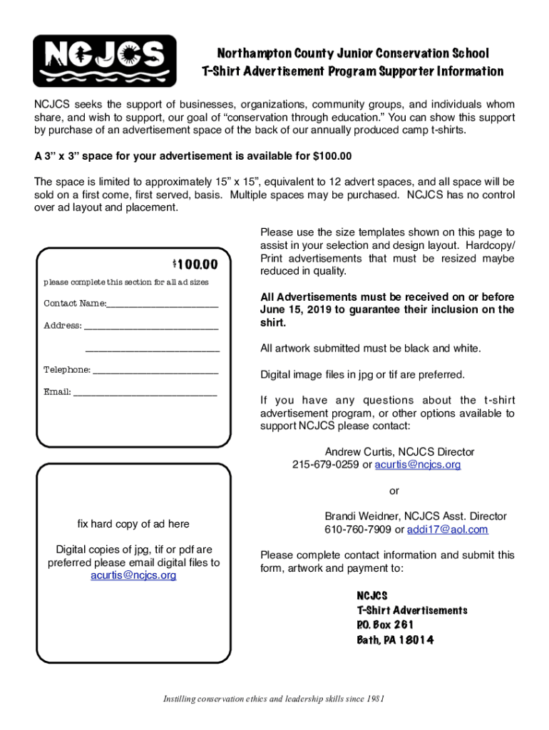 Shirt Advertisement Program Supporter Information