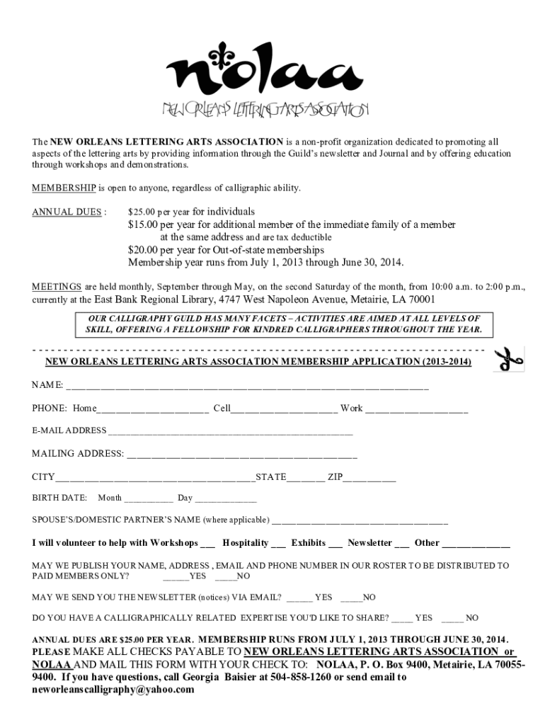 Fill out your new orleans art association online with pdfFiller!