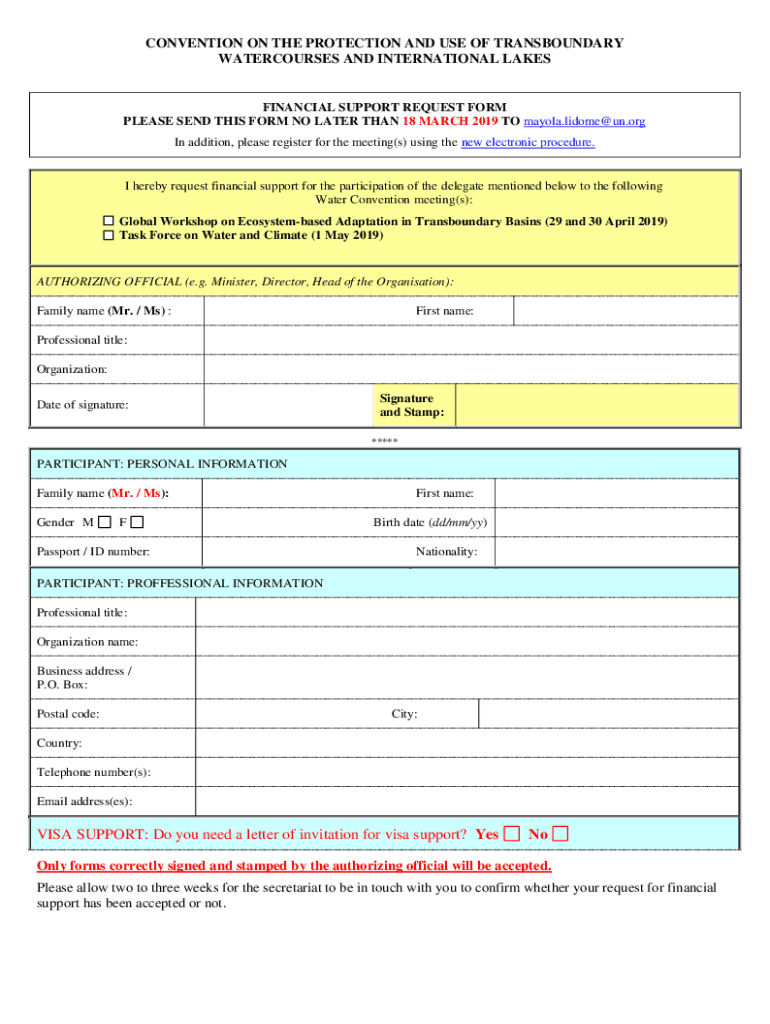 WATERCOURSES AND INTERNATIONAL LAKESFINANCIAL SUPPORT REQUEST FORM