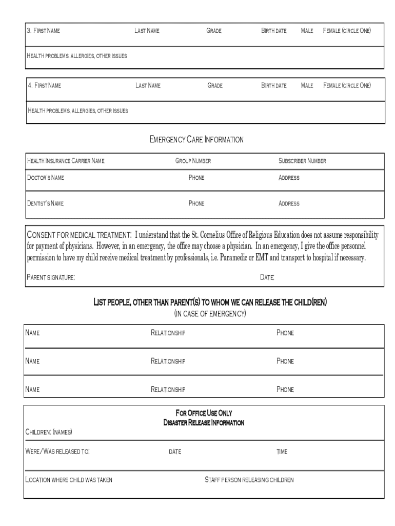 3. First Nameless NameGradeBirth dateMaleFemale (circle One)Last NameGradeBirth dateMaleFemale (circle One)Health problems, allergies, other issues4. First Name