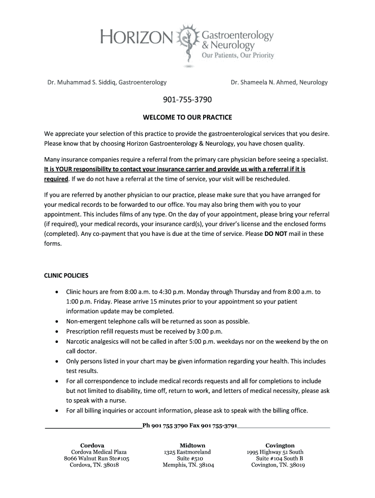 Any patient intending to receive healthcare services at Horizon Gastroenterology & Neurology should complete the Patient Intake Form. In cases where patients are unable, responsible parties may fill it out on their behalf.