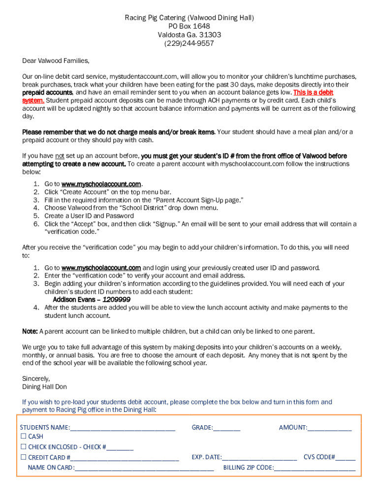 Our online debit card service, mystudentaccount.com, will allow you to monitor your children's
