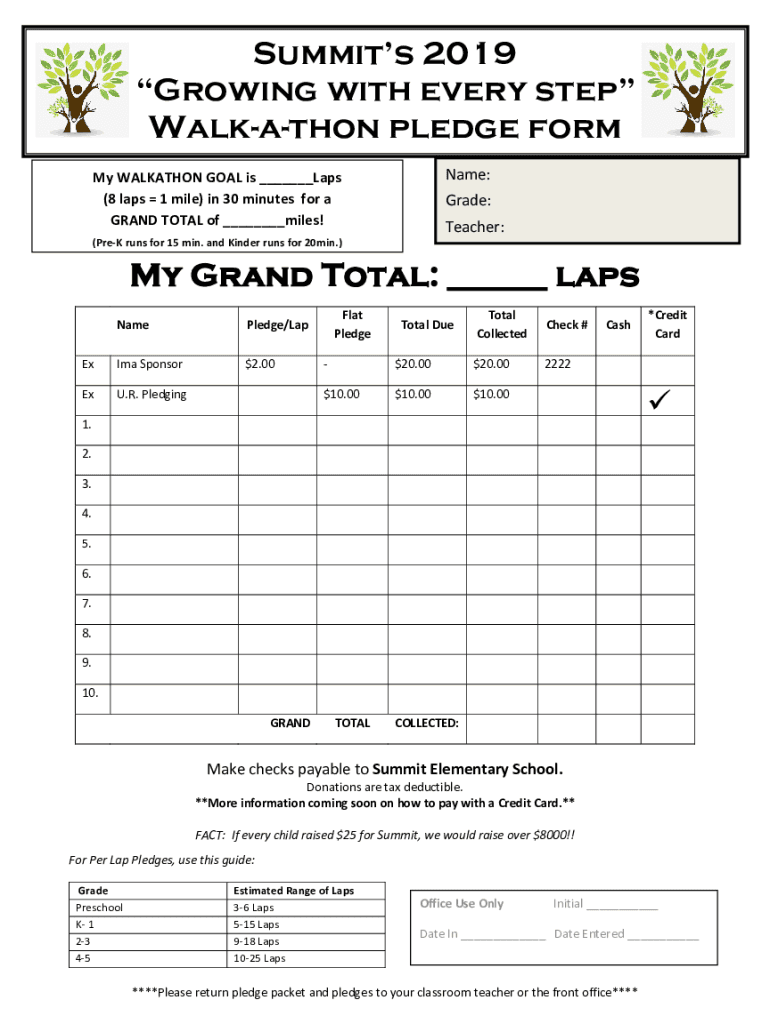 Summits 2019 Growing with every step Hackathon pledge form Name:My HACKATHON GOAL is Laps (8 laps 1 mile) in 30 minutes for a GRAND TOTAL of miles! Grade: Teacher:(Prey runs for 15 min. and Kinder