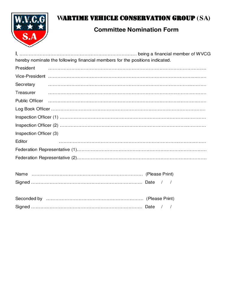 Committee Nomination Form, Being a financial member of WCG