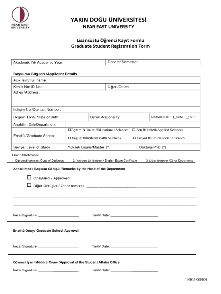 Near East University Graduate is not the form you're looking for?Search for another form here.
