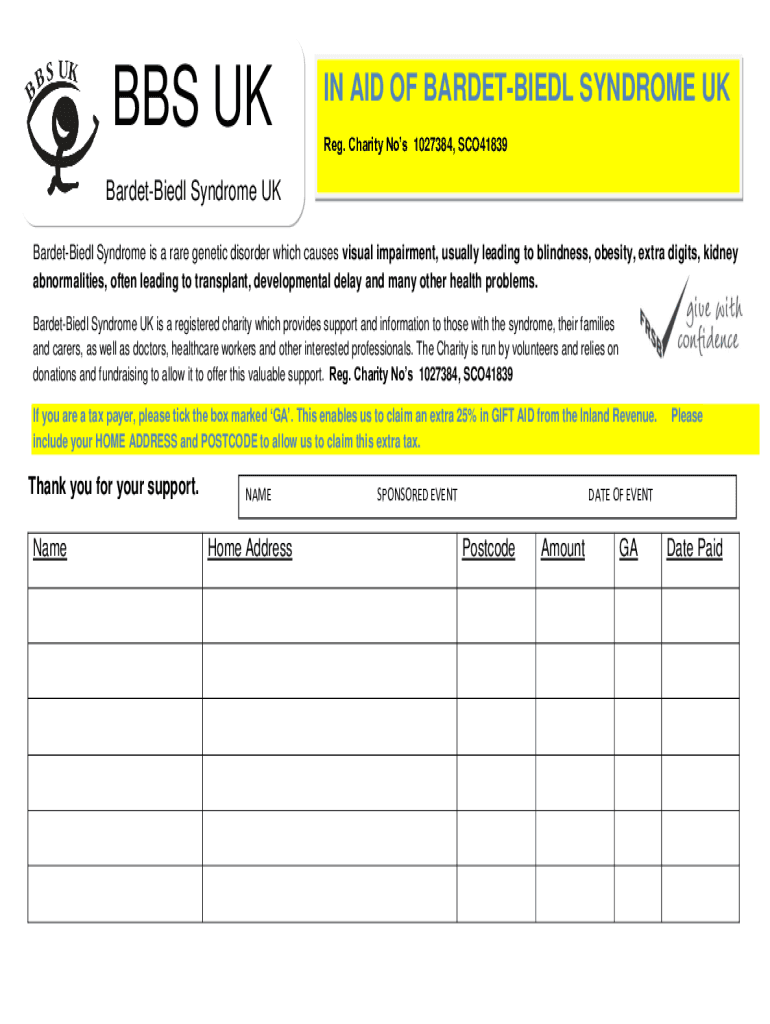 Reg. Charity Nos 1027384, SCO41839BardetBiedl Syndrome UK