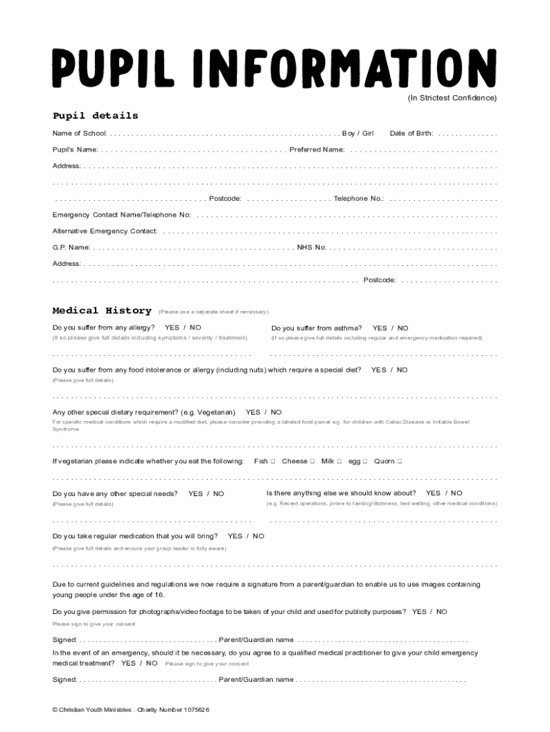 PUPIL INFORMATION (In Strictest Confidence)Pupil details Name of School:. . . . . . . . . . . . . . . . . . . . . . . . . . . . . . . . . . . . . . . . . . . . . . . . . . . . . Boy / Gradate of Birth:.