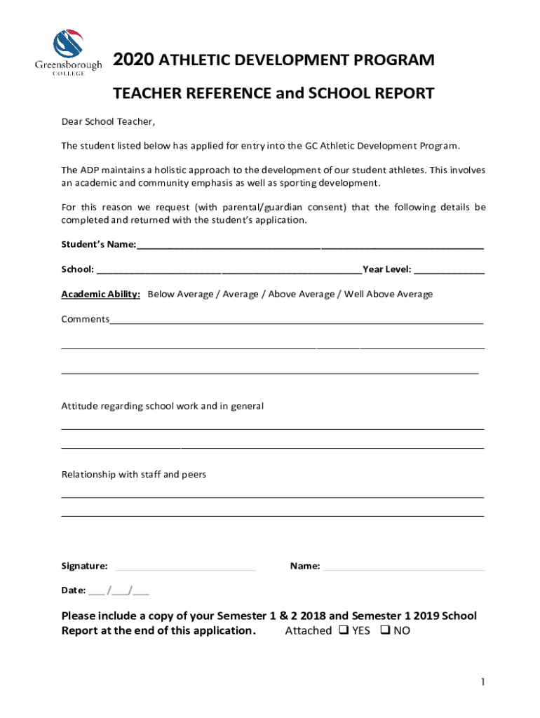 The student listed below has applied for entry into the GC Athletic Development Program.