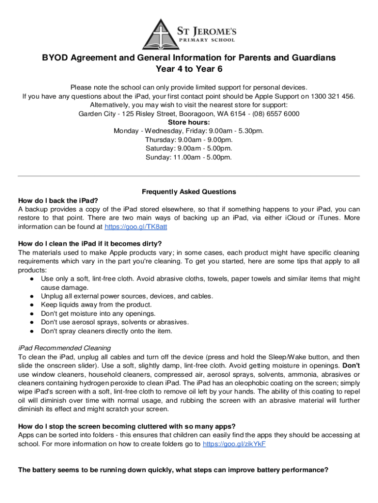 BYOD Agreement and General Information for Parents and Guardians Year 4 to Year 6 Please note the school can only provide limited support for personal devices. If you have any questions about the