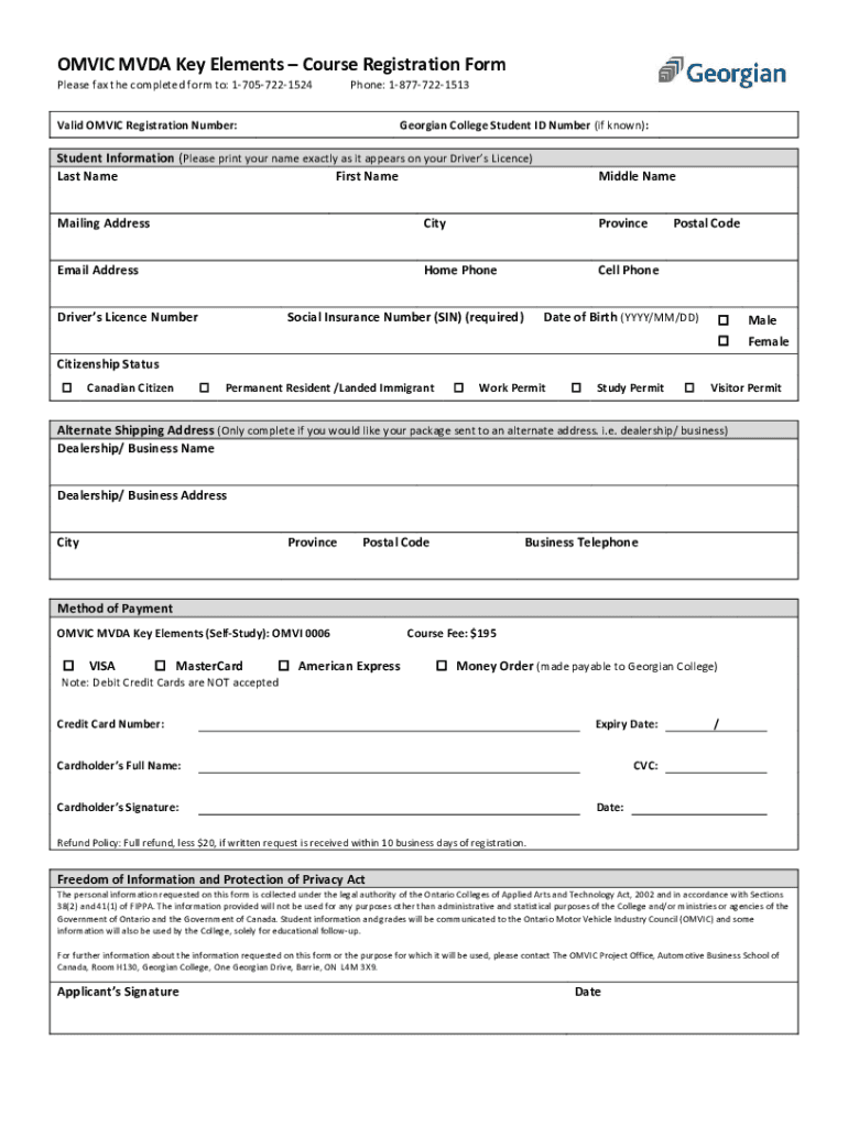 COMIC MVD Key Elements Course Registration Form Please fax the completed form to: 17057221524Phone: 18777221513Valid COMIC Registration Number:Georgian College Student ID Number (if known):Student