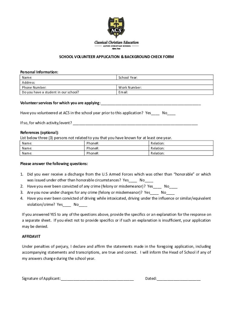 Get the free SCHOOL VOLUNTEER APPLICATION & BACKGROUND CHECK FORM