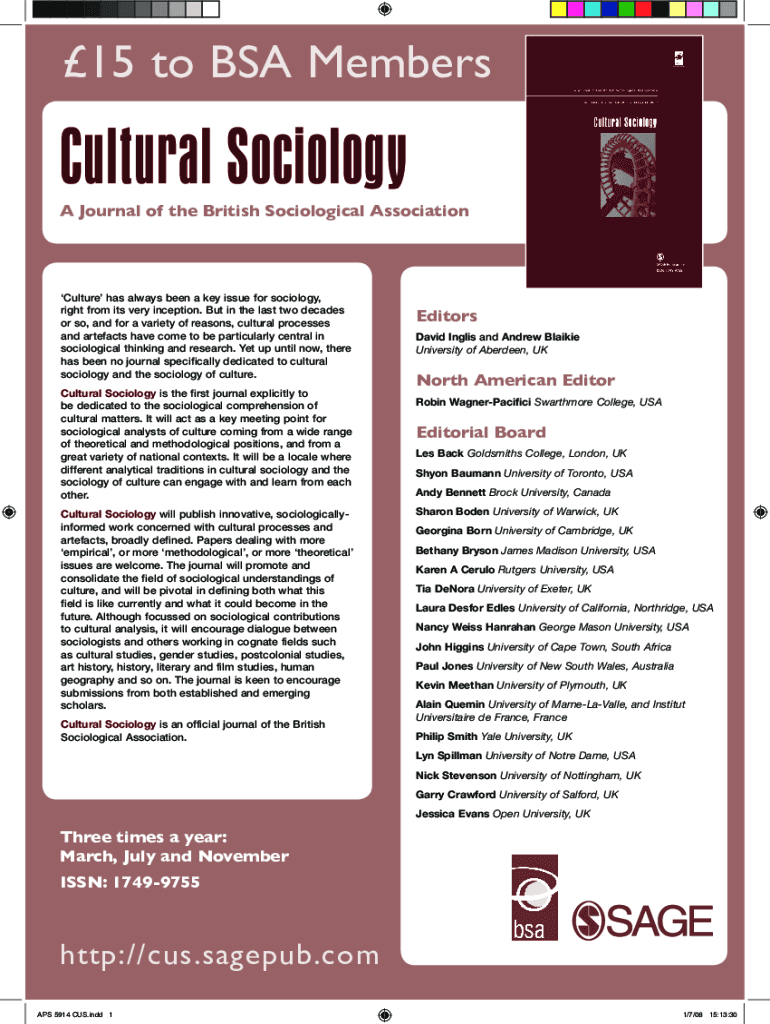 15 to BSA MembersCultural Sociology Journal of the British Sociological AssociationCulture has always been a key issue for sociology,