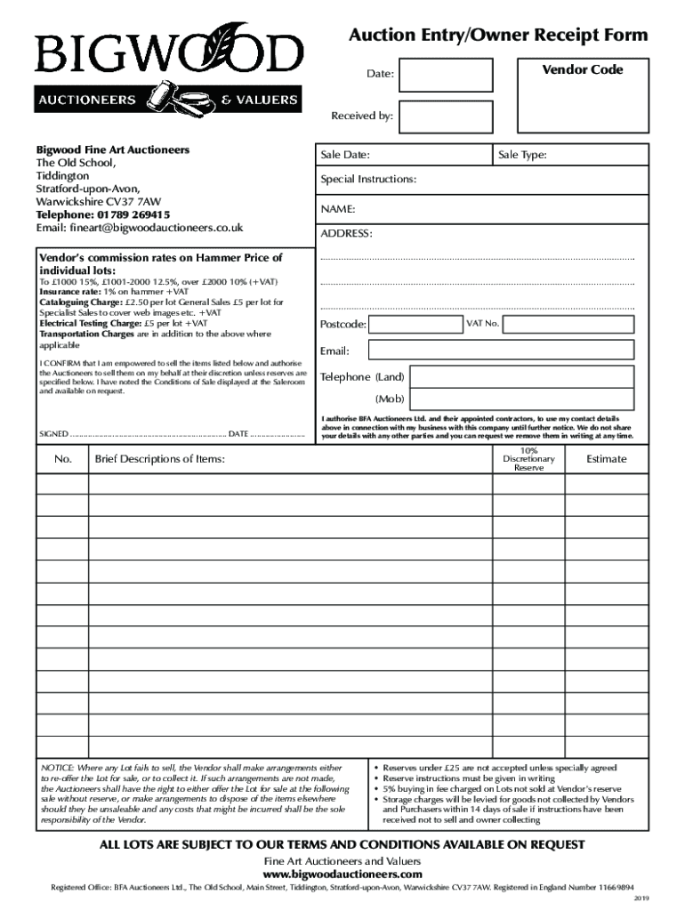 Email: fineart@bigwoodauctioneers.co.ukSale