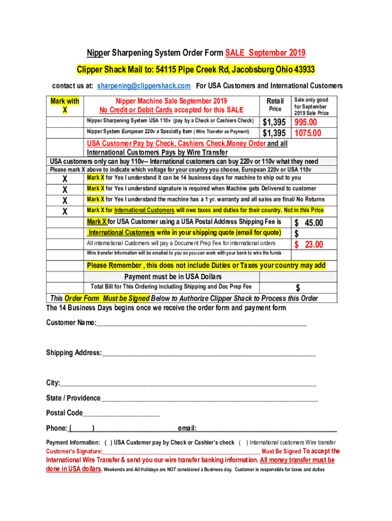 Get the free Nipper Sharpening System Order Form SALE 2019 Clipper Shack ...