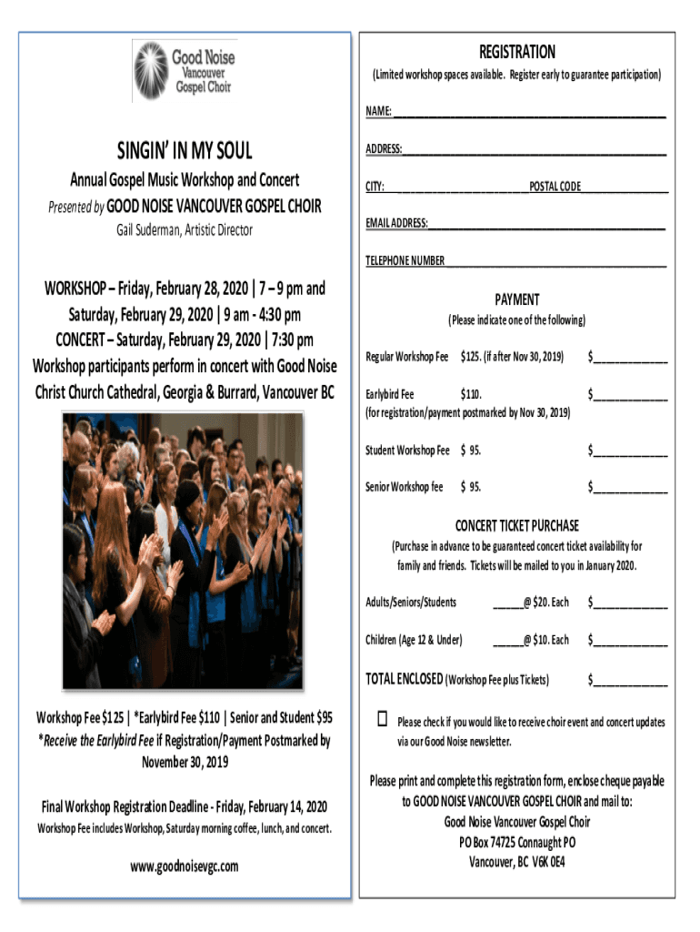 REGISTRATION (Limited workshop spaces available. Register early to guarantee participation) NAME: SINGING IN MY SOUL Annual Gospel Music Workshop and Concert Presented by GOOD NOISE VANCOUVER GOSPEL