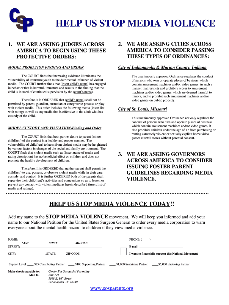 Purpose and Benefits of the Model Protective Order for Media Violence