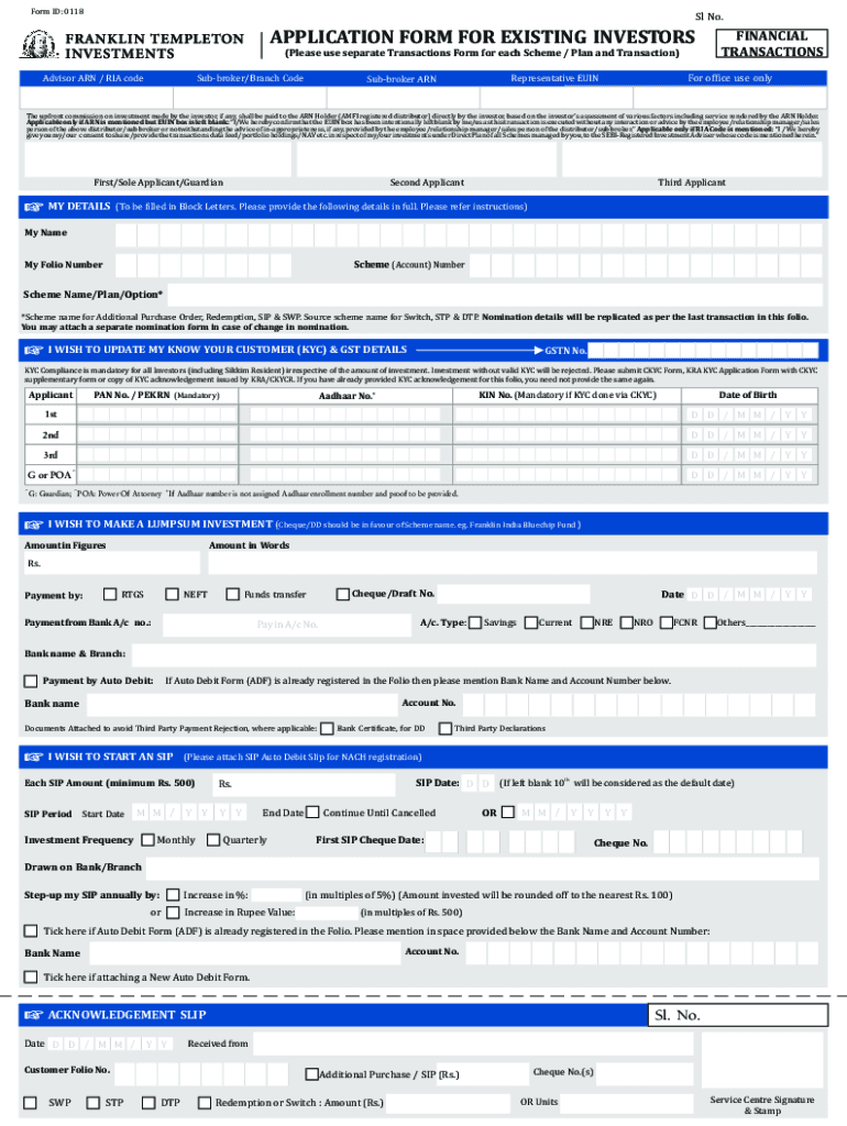 Form ID: 0118Sl No. APPLICATION FORM FOR EXISTING INVESTORS