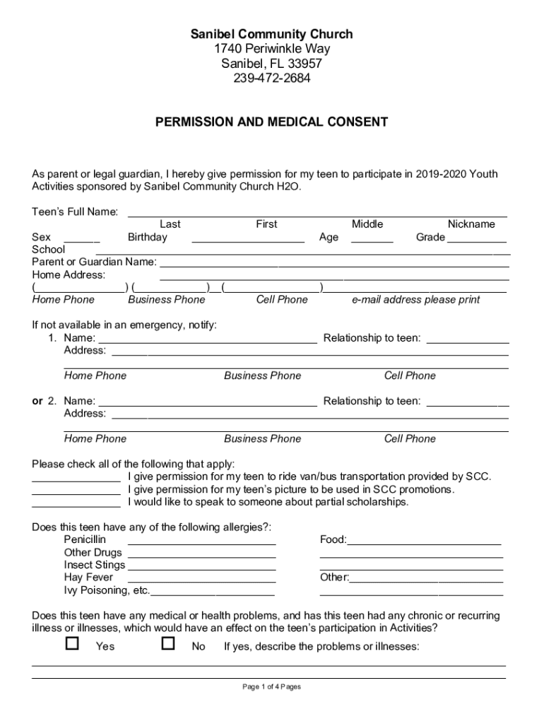 Daniel Community Church 1740 Periwinkle Way Daniel, FL 33957 2394722684 PERMISSION AND MEDICAL Consents parent or legal guardian, I hereby give permission for my teen to participate in 20192020 Youth