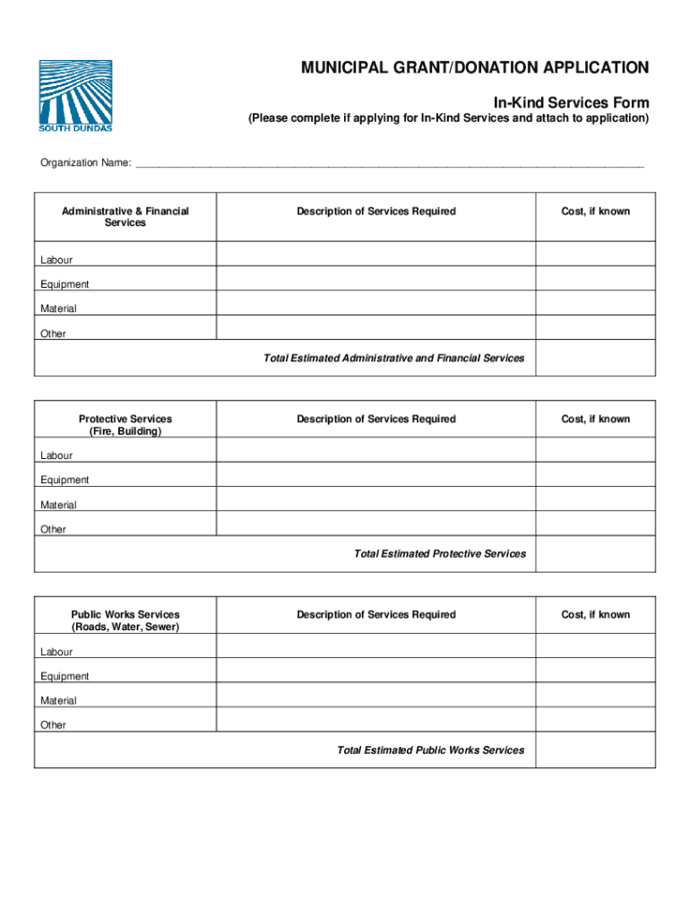 MUNICIPAL GRANT/DONATION APPLICATION Inking Services Form (Please complete if applying for Inking Services and attach to application)Organization Name: Administrative & Financial ServicesDescription