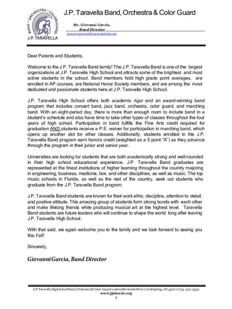 J.P. Tarantella Band, Orchestra & Color Guard Mr. Giovanni Garcia, Band Director Giovanni. Garcia browardschools. Compare Parents and Students, Welcome to the J.P. Tarantella Band family! The J.P.