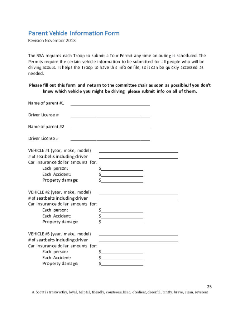 The BSA requires each Troop to submit a Tour Permit any time an outing is scheduled. The
