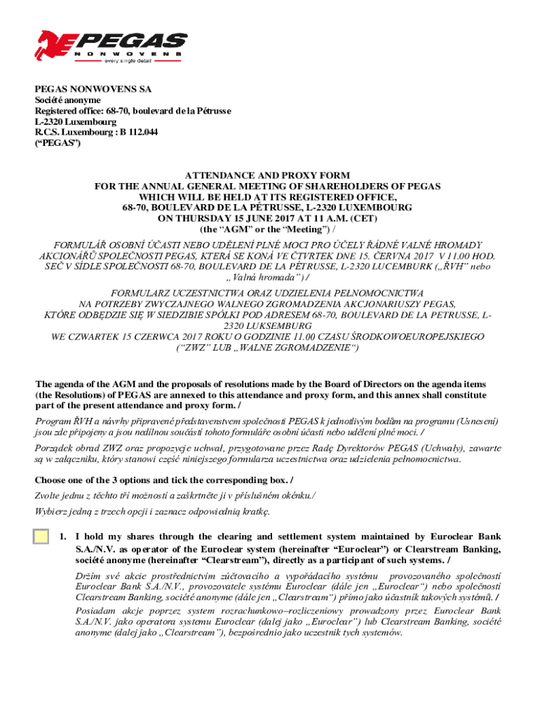 (VEGAS)ATTENDANCE AND PROXY FORM