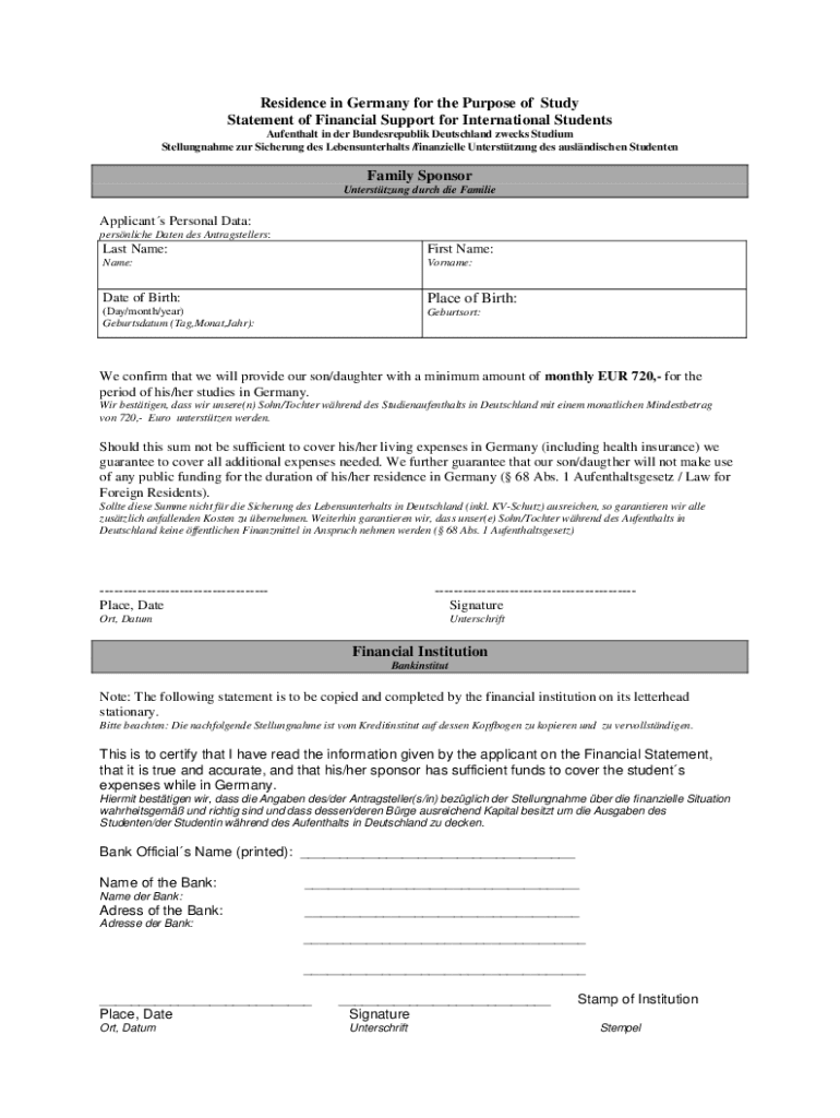 Get the free Residence in Germany for the Purpose of Study Statement of ...