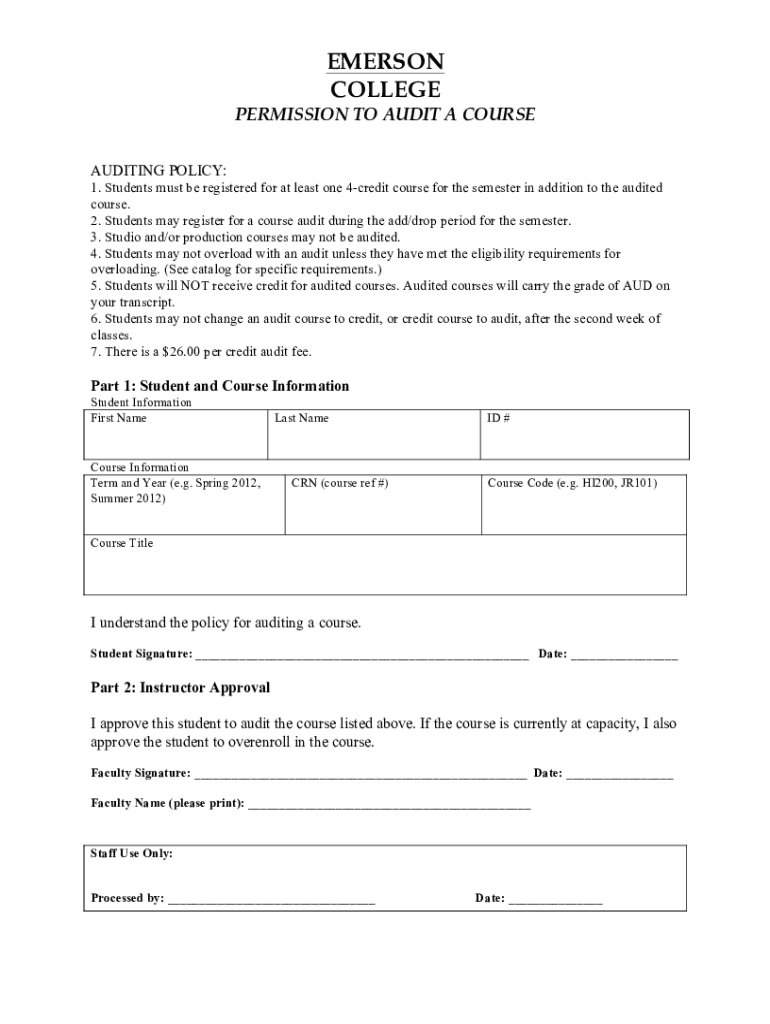 PERMISSION TO AUDIT A COURSE