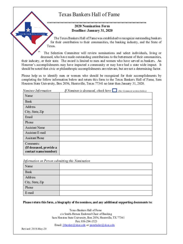 The Texas Bankers Hall of Fame was established to recognize outstanding bankers
