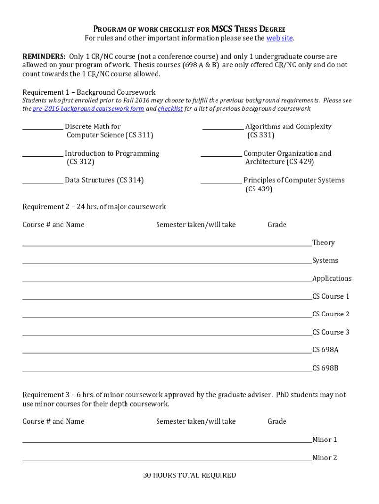 PROGRAMOFWORKCHECKLISTFORMSCSTHESISDEGREEForrulesandotherimportantinformationpleaseseethewebsite. REMINDERS:Only1CR/NC course(notaconferencecourse)andonly1undergraduatecourseare allowedonyourprogramofwork.