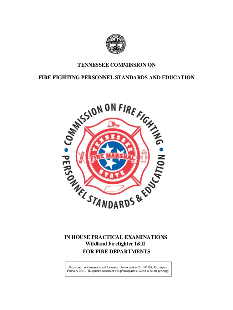 TENNESSEE COMMISSION ON FIRE FIGHTING PERSONNEL STANDARDS AND EDUCATION IN HOUSE PRACTICAL EXAMINATIONS Wild land Firefighter ITII FOR FIRE DEPARTMENTS Department of Commerce and Insurance, Authorization