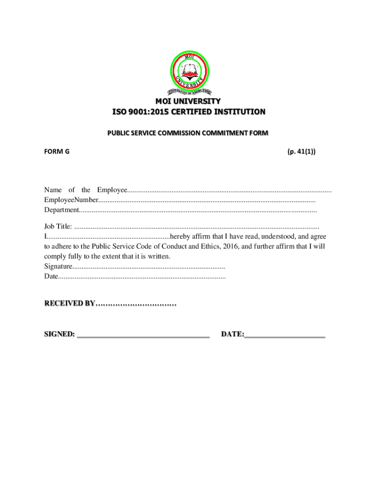 PUBLIC SERVICE COMMISSION COMMITMENT FORM G(p. 41(1))Name of the Employee...............................................................................................................