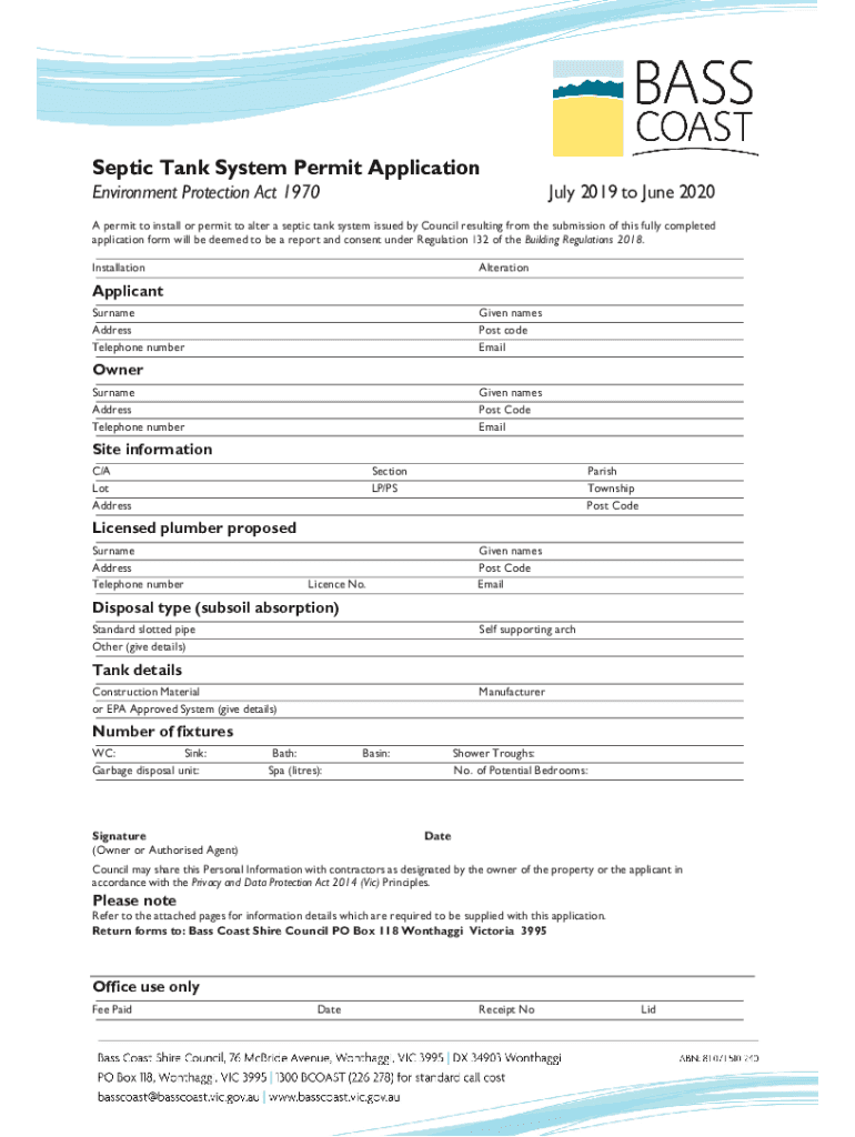 To fill out a septic tank permit application, you need to provide details about the property, the proposed septic system design, and comply with local regulations. This usually includes using a specific form provided by local health departments or regulatory agencies.