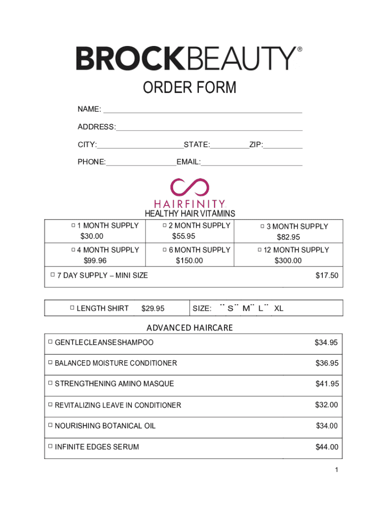 ORDER FORM NAME: ADDRESS: CITY:STATE:PHONE:ZIP:EMAIL:HEALTHY HAIR VITAMINS 1 MONTH SUPPLY $30.00 2 MONTH SUPPLY $55.95 3 MONTH SUPPLY $82.95 4 MONTH SUPPLY $99.96 6 MONTH SUPPLY $150.00 12 MONTH SUPPLY